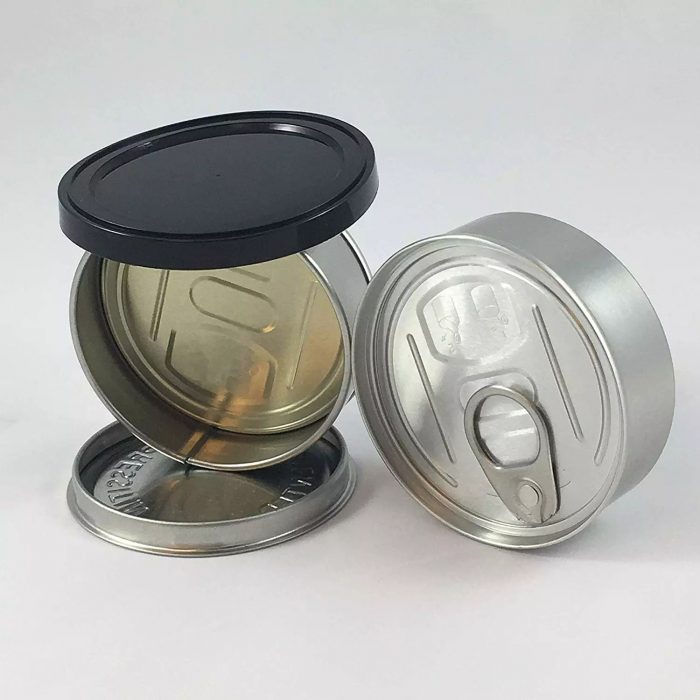 | Material | Aluminum ring pull tab, tin can body,and plastic lid |